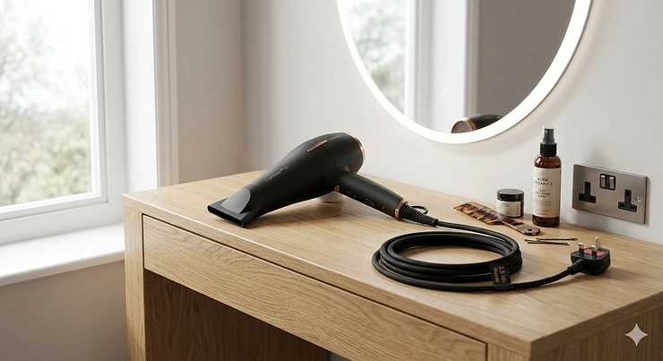 Measure the distance between your styling area and the nearest power socket. If you’re more than 1.5 metres away, a standard hair dryer simply won’t provide comfortable reach. For most UK bathrooms, a 2.5-3 metre cord proves ideal.